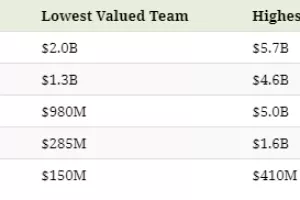 Recimo, najvrjednija momčad u NFL-u vrijedi 5,7 milijardi dolara, u NBA-u 1,8 milijardi.