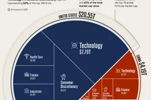 Glavni razlog američke dominacije u tržišnim vrijednostima je promjena u važnim industrijama. Od top 100 svjetskih tvrtki, 52% njih se temelji na tehnologiji, pa ne čudi da trenutno najveći američki igrači poput Applea, Alphabeta, Tesle i Walmarta imaju sjedište u Americi.