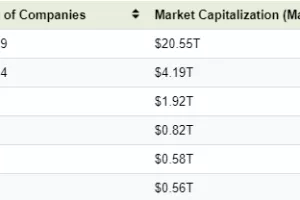 U usporedbi sa SAD-om, druga nekada istaknuta tržišta poput Japana, Francuske i Velike Britanije tijekom godina padaju kao i njihov udio u top 100 svjetskih tvrtki. Zapravo, na cijelu Europu otpada samo 3,46 bilijuna američkih dolara ili 11% ukupne vrijednosti tržišne kapitalizacije.