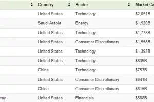 A među zemljama ta podjela postaje još oštrija. Od 16 zemalja s tvrtkama koje su rangirale top 100, tvrtke iz SAD-a čine 65% ukupne vrijednosti tržišne kapitalizacije.
