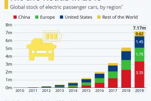Kina je i dalje najveće tržište električnih vozila i sama je odgovorna za polovicu prodanih u prošloj godini, zatim slijedi Europa s 560 tisuća i SAD s oko 330 tisuća prodanih električnih automobila. Izuzetan položaj Kine ogleda se i u broju električnih vozila u upotrebi. Prema IEA-i, na Kinu otpada 3,35 milijuna od ukupnih 7,2 milijuna, što je dvostruko više nego u SAD-u.