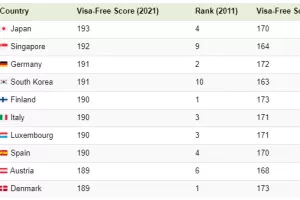 Bez razmatranja stalnih promjena ograničenja COVID-19, Japan čvrsto drži svoju poziciju države s najjačom putovnicom već četvrtu godinu zaredom. Ovo se pozicioniranje temelji na ekskluzivnim podacima Međunarodnog udruženja zračnog prometa (IATA) koje kaže kako Japanci sa svojim putovnicama mogu bez viza ući u čak 193 zemlje. Japan posljednji put nije zauzeo poziciju broj jedan davne 2017. godine, kada je peto mjesto podijelio sa zemljama poput Sjedinjenih Država, Novog Zelanda i Švicarske.