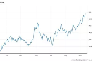 Kod poljoprivrednih burzovnih roba, trenutno je u fokusu pšenica. Kiše u Australiji samo su povećale sumnje u pad kvalitete i prinosa pšenice gdje se prvotno očekivao drugu godinu zaredom jedan o većih uroda. Sve se to događa u trenutku kada je na tržištu velika potražnja za pšenicom (gotovo sve zemlje uvoznice imaju tendere za kupnju pšenice), a ponuda kvalitetne pšenice je ograničena (bilo zbog lošije kvaliteta (EU) ili izvoznih restrikcija (Rusija, Argentina)). Povrh toga, tržištem se šire glasine da je Kina kupila francusku pšenicu. Kao posljedica, cijena pšenice na MATIFU testira granicu od 300 €/t, što je trenutno snažna psihološka granica koja bi ako se prijeđe mogla potaknuti špekulante da povećaju svoje kupovne pozicije. Cijena pšenice raste i na američkim burzama iz istih razloga. U petak su dosegnute najviše razine od 2012. godine na CBOT.