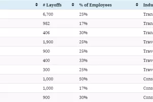 Ne iznenađuje da su mnogi, najteže pogođeni, startupovi povezani s industrijom putovanja i mobilnosti. Prvi na listi je naravno Uber koji je bio primoran zatvoriti 45 ureda diljem Amerike uz što su otpustili 67000 zaposlenika od sredine ožujka, što je nagnalo i izvršnog direktora da se odrekne milijun dolara od svoje plaće za ostatak godine.