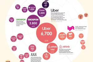 Današnja infografika izvlači podatke s Layoffs.fyi i pokazuje veliki broj otpuštanja kroz 30 najpoznatijih startupa u Americi. Svaka od tvrtki otpustila je više od 250 zaposlenika između 11. ožujka i 26. svibnja 2020. godine.