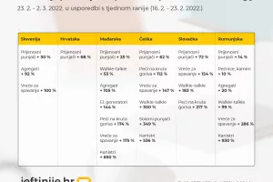 Dok je kod hrvatskih potrošača to podudaranje u pretraživanjima vidljivo u kategoriji prijenosnih punjača za kojima je zabilježeno povećanje potražnje od gotovo 70 posto u odnosu na tjedan ranije, kod slovenskih potrošača poklapanje s potrošačima u ostatku CEE regije vidljivo je i u kategorijama poput agregata (povećanje potražnje od 92 posto) te vreća za spavanje (povećanje potražnje za 100 posto).
