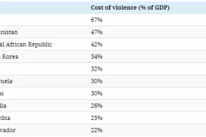 Između 2012. -2017., troškovi nasilja porasli su za 11 posto na 14,6 bilijuna dolara, uglavnom zbog porasta nasilja u Siriji, Libiji, Jemenu i drugim dijelovima Bliskog Istoka i Sjeverne Afrike.