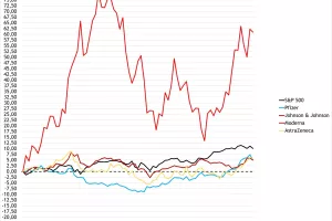 Sve navedeno ukazuje na važnost cjepiva u spašavanju svijeta od COVID-19 pa dio zasluga za, nadamo se, skori kraj pandemije treba pripisati i farmaceutskoj industriji koja je prošle godine nakon hitrog razvoja predstavila prva efikasna cjepiva. Među najvažnijima u tom pothvatu bili su američki farmaceuti Pfizer (burzovna kratice PFE), Moderna (MRNA), Johnson & Johnson (burzovna kratica JNJ) te britanska AstraZeneca (AZN). Ipak, inovativnost ovih kompanija na polju pronalaska cjepiva nije pomogla i njihovim dionicama. Na grafikonu u nastavku vidljiva je izvedba od početka godine koja je ispod kretanja glavnog američkog indeksa S&P 500. Ovdje treba izdvojiti volatilno kretanje dionica Moderne koja nije tipična farmaceutska kompanija nego dolazi iz redova biotehnološke industrije.