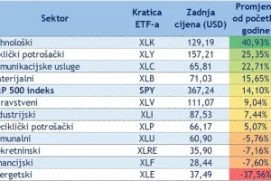 Izvedba pojedinih sektora odnosno promjena ETF-ova koji prate kretanja indeksa prema sektorskoj kvalifikaciji S&P-a te ETF koji prati kretanje S&P 500 indeksa prikazano je u sljedećoj tablici: