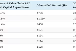 Razvoj 5G mreža i njena primjena u industriji globalne ekonomije je ogroman posao, a očekuje se da će samo sedam zemalja činiti 79 posto ulaganja u 5G mrežu.