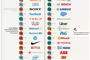 Huawei je ove godine zauzeo 6. mjesto, što je skok od čak 42 mjesta za godinu dana. Taj rast posljedica je značajnih ulaganja u tvrtke u istraživanje i razvoj u iznosu od čak 19 milijardi dolara u 2019. godini. Čini se da se ovo ulaganje već polako isplatilo jer je u 2019. godini Huawei prodao više pametnih telefona od Applea.