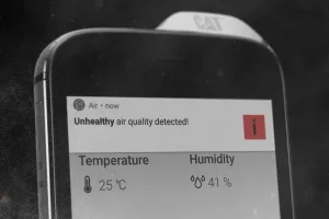 Obzirom da omogućava mjerenje visokih razina zagađenosti u nekom zatvorenom prostoru (Volatile Organic Compounds ili VOC), Cat S61 može putem senzora kvalitete zraka pratiti uvjete u unutrašnjem okruženju u kojem se nalazite, a aplikacija „Air“ potaknut će vas da otvorite prozor ili izađete na svjež zrak ukoliko detektira nezdravo okruženje i visoku razinu VOC-a. Najčešći izvori VOC-a su boje, otapala, tepisi, namještaj, te proizvodi za čišćenje, a svi su uobičajeni u okruženjima tipičnima za korisnike Cat telefona. Ova funkcionalnost se također može koristiti za očitanje razine temperature ili vlažnosti što je korisno kada se nalazite, primjerice, u prostorima bez ventilatora ili kada otvaranje prozora ne može u potpunosti otkloniti vlagu. Senzor također možete iskoristiti da vam naznači kada je svježe ožbukani zid suh i spreman za bojenje.