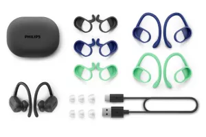 Philips TAA7306BK slušalice imaju fleksibilna i odvojiva krilca koja osiguravaju pristajanje tijekom treninga laganog do srednjeg intenziteta. Kada na red dođe trening jačeg intenziteta, odvojivi držači za uši osiguravaju da kapice slušalica ostanu na mjestu. Energičan zvuk odaje dojam fokusiranosti, a uređaj za nadzor otkucaja srca pomoći će svakome da trenira u skladu svojih mogućnosti. Kutija u kojoj dolaze slušalice, osim za punjenje, služi i za UV čišćenje.
