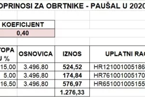 Iznos doprinosa za 2020. za obrtnike 'paušalce'