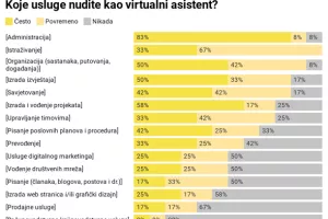 Kao što rezultati tog istraživanja pokazuju, usluge koje su najčešće pružali bile su: administriranje, organiziranje, izrađivanje i provođenje projekata, pisanje poslovnih planova i procedura, izrađivanje izvještaja i vođenje digitalnog marketinga.
