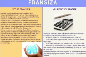 Naime, franšiza je sudjelovanje osigurane osobe u šteti, i to u unaprijed definiranom iznosu. Pojednostavljeno, u slučaju da je ugovorom o osiguranju predviđena franšiza, osiguranik određeni iznos štete snosi sam. Niže pogledajte objašnjenja što je franšiza, koje su vrste i kako se koristi. Cijeli dokument Hanfe dostupan je ovdje.