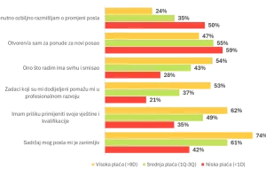 Ipak, želja za promjenom i dalje postoji. Više od polovice sudionika istraživanja tvrdi da bi razmotrili novi posao ako im se ponudi bolja prilika, a svaki treći ozbiljno razmišlja o promjeni poslodavca.