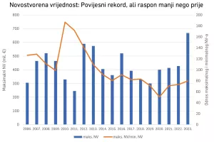 Međutim, u ovih 18 godina smanjio se jaz između vrha i dna liste. Najbolja kompanija ostvarivala je početnih godina oko 120 puta veći NV od one na posljednjem, 500. mjestu (Ina je 2010. imala čak 187 puta veći NV od Grafičkog zavoda Hrvatske), a posljednjih je godina taj raspon oko 80 puta (uz iznimku 2020., kad je, u koroni, HT imao NV 'samo' 50 puta veći od tvrtke PZC Varaždin). To svojevrsno zgušnjavanje dobar je znak, jer pokazuje da se konkurencija sve više zaoštrava.
