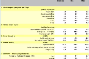 Opća slika neposredne budućnosti koja je iscrtana ovim prognozama veoma je dobra. Očekuje se daljnji pad stope nezaposlenosti s 5,3 posto 2024. na 5,0 posto 2025. i 4,9 posto 2026. To znači nastavak napetosti na tržištu rada i nastavak pritisaka na rast plaća. Rast (nominalni) prosjeka za plaće bruto I očekuje se na 7,0 posto 2025. i 4,2 posto 2026., dakle iznad (prosječne) stope inflacije koja se očekuje na i dalje povišenim razinama od 2,8 posto 2025. i 2,3 posto 2026. Povišena inflacija malo iznad 2 posto nastavit će doprinositi punjenju proračuna opće države, no glavni ekonomisti hrvatskih banaka očekuju malo veći deficit, visine 2,5 posto BDP-a 2025. (Vlada očekuje 2,3 posto) i 2,1 posto 2026. (Vlada očekuje 1,9 posto). Ne radi se o značajnim razlikama koje bi mogle osjetnije poremetiti očekivanu putanju javnog duga, koji u prognozama, mjereno postotkom BDP-a, nastavlja padati prema 56,8 posto na kraju 2026.