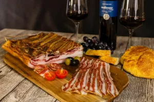 – Opskrba Trade bavi se isključivo proizvodnjom i prodajom certificiranih tradicionalnih proizvoda dalmatinskog pršuta i dalmatinske pancete, proizvodima zaštićenima na razini Europske unije. Europsku zaštićenu oznaku zemljopisnog podrijetla dalmatinski pršut dobio je u veljači 2016., a dalmatinska panceta 2021., kad i dalmatinska pečenica. Dodijeljena oznaka znači da se ti proizvodi proizvode prema točno specificiranim postupcima u točno navedenim područjima. Svaki od tih proizvoda ima europsku oznaku koja se nalazi uz naziv proizvoda i potvrđuje kupnju autentičnog i kontroliranog proizvoda priznate kvalitete. Svoj pršut prodajemo u komadu, kao rezani te u kockicama. Slično je s pancetom, koju također nudimo u tri proizvoda: kao cijelu koru, odnosno tablu, narezak i komad od oko tristo grama. U pršutoreznici nudimo također uslužno narezivanje i vakumiranje pršuta, pancete i kobasica za privatne osobe – iznosi Barić.