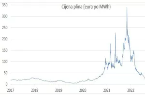 Cijena europskog plina nastavlja pad sve do 23 eura po megavatsatu na dvogodišnji minimum zahvaljujući kontinuiranoj korekciji kratkoročnih prognoza naniže nakon što je cijena već pala 75 posto u usporedbi s maksimalcem iz kolovoza 2022. godine.