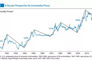 Pronašao sam zanimljiv i ne baš optimističan graf kretanja raznih burzovnih roba u zadnjih stotinjak godina. Ako se pogleda kretanje, onda je ono stepenasto, u uzlaznom trendu. Svaki rast je bio potaknut nekim globalnim događajem, poput rata ili naftne krize i slično i trajao je i do dva desetljeća. U tom kontekstu možda je trenutni rat početak nove faze. Cijene na burzama za sada to sugeriraju.