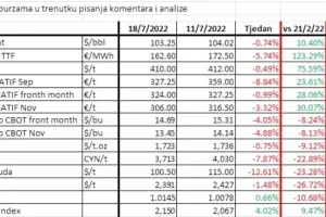 Rast kamatnih stopa bit će penalizirajući za burzovnu robu, pogotovo za tzv. hard commodities (kao što su metali, nafta, ugljen). U teoriji bi moglo biti penalizirajuće i za agri burzovnu robu, ali uz bullish fundamente za plin, koji utječe na cijenu gnojiva i na relativno nizak omjer zalihe i potrošnje, vjerojatno neće biti u tolikoj mjeri. U SAD-u cijene plina su porasle 30 posto od početka srpnja. To je znak da se tržište trenutno kladi na zatvaranje dotoka ruskog plina u EU.