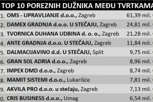 Lista srama: Pogledajte deset najvećih poreznih dužnika, i koja tvrtka je generirala dug od 85 milijuna eura