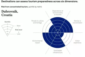 Također, Dubrovnik spada u najviši kvintil rizika u četiri od šest kategorija koje navodi McKinsey. Najviše je više izložen riziku ovisnosti lokalnog gospodarstva o turizmu, prekomjernog broja turista, preopterećene infrastrukture i utjecaja na okoliš, dok je nešto manji rizik i na očuvanje kulture i baštine.