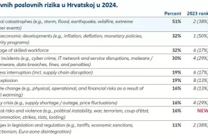 Podaci za Hrvatsku pokazuju kako su prirodne katastrofe poput oluja, poplava, potresa, požara i ekstremnih vremenskih nepogoda najveća prijetnja hrvatskim kompanijama (s 2. mjesta na 1. mjesto u usporedbi s prethodnom godinom), dok su makroekonomski razvoji kao što su inflacija, monetarna politika i mjere štednje zauzele drugo mjesto na ljestvici Barometra rizika (s 1. mjesta na 2. mjesto). Nedostatak kvalificirane radne snage nalazi se na trećem mjestu, što je značajan porast na ljestvici u usporedbi s prethodnom godinom kada se ovaj rizik nalazio na šestom mjestu.