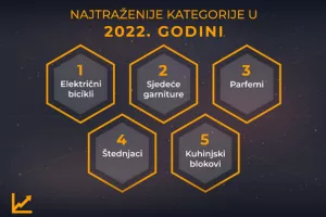 Komparativna usporedba potražnje u Hrvatskoj, Srbiji i Sloveniji otkrila je sličnosti u ponašanju online potrošača. Uz već spomenute kategorije koje su osvojile online kupce u Hrvatskoj tijekom 2022. godine, naši su slovenski susjedi u godini na izmaku najviše pretraživali motorne pile, slušalice za mobitele, električne bicikle, zimske gume i klima uređaje.