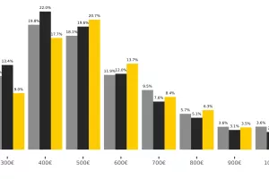 Prema podacima Njuškala, najveća ponuda stanova je u cjenovnim razredima od 450 do 650 eura mjesečno, dok je onih ispod 350 eura tek 10 posto u ukupnoj ponudi. S druge strane, oko 30 posto najmoprimaca u Zagrebu, ali i Splitu, traži stanove za najam od 350 do 450 eura, a preferiraju one od 40 do 60 kvadratnih metara. Stanova do 300 eura, kakvi se također prilično pretražuju, značajno nedostaje.