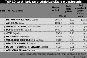 Odluku o tome uglavnom neće donositi u Hrvatskoj jer je čak 31 od 32 tvrtke s rang-liste koje su predale izvještaje o poslovanju u prošloj godini u stranom vlasništvu i, kao što smo već napisali, riječ je mahom o izvještajima koji se odnose na poslovanje do kraja prvog polugodišta ili trećeg kvartala.