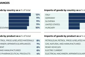 Najveći trgovinski partner Hrvatske je Italija – 12 posto hrvatskog izvoza odlazi u Italiju, dok 14 posto uvoza dolazi iz Italije.