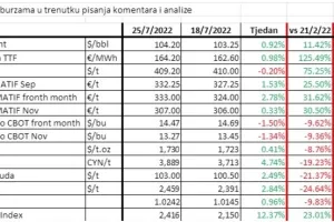 Cijena plina i dalje iznad 160 €/MWh. Premda je plinovod Sjeverni tok ponovno u funkciji, trenutno je na samo 40 posto kapaciteta (u stilu Alan Forda možemo zaključiti da je bolje nego 0 posto) zbog neizvjesnoti oko budućih isporuka plina iz Rusije. Hoćemo li u narednim tjednima vidjeti sankcije na energente iz Rusije?