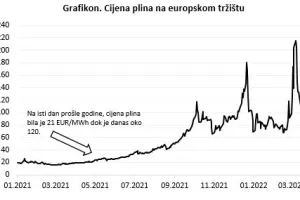 Ovaj tjedan ruski je predsjednik najavio kako će odsad europske zemlje ruski plin morati plaćati u ruskoj rublji, što je samo pogoršalo situaciju na tržištima energije. Na grafikonu 1. može se vidjeti kako se cijena plina na europskom tržištu u zadnja dva tjedna smirila, međutim ovaj tjedan cijena je opet počela rasti zbog sve veće neizvjesnosti oko ruskog plina.