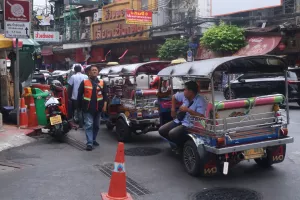 Kao i u bilo kojem drugom velikom gradu jugoistočne Azije, oči bode promet. Gust u svakome dijelu dana (da, i vikendima), recimo nedjeljom uvečer, u vrijeme kada se Zagreb čini gradom duhova, Bangkok blješti svjetlima, glazbom, ljudima, tuk tukovima, bukom života. I dok Zagreb još žmireći pipka rješenja, Bangkok vrvi njima – golemo se područje spaja podzemnom željeznicom, sky trainom, autobusima, taksijima svih oblika (minivan, automobil, motor) i slavnim tuk tukovima. Kao i u Vijetnamu, semaforska se svjetla načelno poštuju, ali ako iz suprotnih i bočnih smjerova nema opasnosti, bez problema će proći kroz crveno. Iskustvo vožnje na motoru, kroz špicu gužve, dok mi automobili i s lijeve i desne dodiruju koljeno (brzine dostižu 60-ak kilometara na sat), sve to dok se s noktima zabijenima u sjedalo pokušavam zadržati na njemu, priča je za podulju kavu – s gestikulacijom i onomatopejom, nije opisiva tekstom.