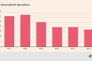 Važnije promjene ne uočavaju se ni u odnosu broja živorođenih djevojčica i dječaka – djevojčica je uvijek nešto manje i njihov udio iznosi oko 48%. No, ono što je svakako primjetno jest znatan pad ukupnog broja živorođenih pa tako, naravno, i djevojčica, čiji se broj u 2021. u odnosu na 1971. gotovo prepolovio.