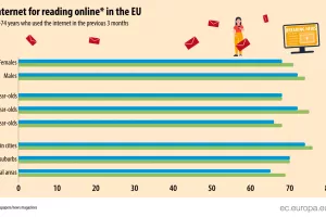 Prema najnovijim podacima Eurostata, u 2021. godini 72 posto korisnika interneta u Europskoj uniji u dobi od 16 do 74 godine čitalo je portale s vijestima, bilo da se radi o online novinama ili časopisima, što je povećanje od dva postotna boda u usporedbi s 2016. godinom.