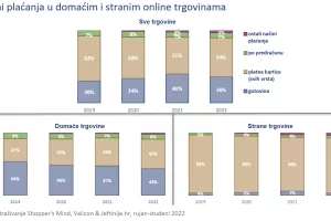 Što se tiče načina plaćanja, bilo kojom vrstom platnih kartica plaća 54 % ispitanika dok njih 36 % i dalje odabire plaćanje pouzećem. Plaćanje pouzećem je karakterističan oblik plaćanja na tržištima s nižim povjerenjem u e-commerce i dugi je niz godina bio dominantan način online plaćanja u Hrvatskoj.