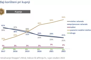 U ovogodišnjem E-commerce Reportu je po prvi puta zabilježeno da je više od polovice online kupnji izvršeno putem pametnog telefona, i to čak 56 %. Kada je riječ o istraživanju prije kupnje, svega 26 % online kupaca koristi isključivo računalo (PC ili laptop) za istraživanje, 24 % njih koristi kombinaciju računala i mobitela dok 51 % koristi isključivo pametni telefon ili tablet.
