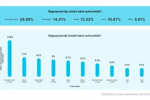 Mercedes-Benz (29 % svih taksi automobila provjerenih na carVerticalu), Volkswagen (14,4 %), Škoda (12,3 %), Volvo (10,9 %) i BMW (5,8 %) najpopularnije su marke taksi automobila na tržištu polovnih vozila. Budući da kupci jako cijene ove proizvođače, prevaranti to često koriste kako bi ostvarili profit.