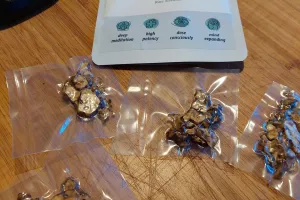 Nakon samo dvije e-poruke 'prijatelji' iz Nizozemske poslali su 'Starter package: high frequency', koji se sastoji od dva paketa. U jednom se nalazi 20-ak grama prirodnog psilocibina od gljive Psilocybe pajateros u obliku sklerocija, tj. micelija gljiva. Razlika između toga i gljiva je što se sklerocij nalazi ispod zemlje i zapravo je donji dio gljive koji se ne vidi, ali je sastav potpuno isti. Uz taj paket Earth Resonance šalje i 50 grama gljive Lion's mane (resasti igličar ili lavlja griva), poznate po blagotvornu djelovanju na mozak i živčani sustav. Za razliku od psilocibina, koji je i dalje na popisu droga, potpuno je legalna. Ta praksa kombiniranja još se naziva i 'slaganje' i uključuje kombiniranje mikrodoza psihodelika s drugim tvarima za koje se napominje da ističu blagotvorne učinke.