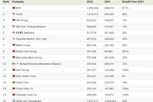 Tesla je pak povećao svoju proizvodnju za respektabilnih 40 posto u 2022., ostajući ispred zapadnih marki kao što su Volkswagen (+10%) i GM (+13%), ali zaostaje za svojim kineskim rivalima kao što je Geely (+251%).