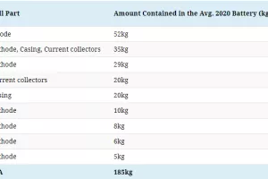 Sveukupno, materijali u katodi čine 31,3 posto mineralne težine u prosječnoj bateriji proizvedenoj 2020. godine.