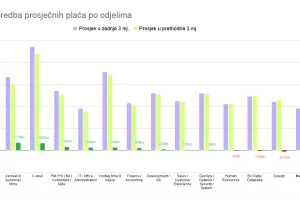 Možda se prosječni rast ne čini toliko značajan, ali ako uđemo dublje u analizu za određene pozicije i odjele, vidimo da je u nekima zabilježen puno konkretniji porast, a u određenim odjelima je došlo i do pada prosječne plaće.