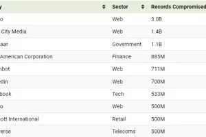 Prošle godine je postavljen neslavni rekord s više od 5,9 milijardi ukradenih korisničkih zapisa, a najveća do sada zabilježena krađa dogodila se 2013. godine kada su tri milijarde Yahoo računa bile kompromitirane. U tom kibernetičkom napadu hakeri su uspjeli prikupiti osobne podatke i lozinke korisnika. Do danas puni opseg tog napada i počinjene štete nije do kraja razjašnjen a pretpostavlja se da su i neki kasniji kibernetički zločini povezani s ovim ukradenim informacijama.