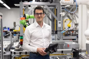 – Imamo različite industrijske i kolaborativne robote. Proizvođači su različiti jer nemamo posebne preferencije za opremu, važno nam je da možemo pilotirati primjenu s različitim tipovima robota, da partneri mogu prepoznati što im odgovara. Neki roboti opremljeni su 2D kamerama, koje su slične digitalnim fotoaparatima, no za razumijevanje geometrije u prostoru dvije dimenzije nisu dovoljne pa se koristimo 3D kamerama koje rade na načelu triangulacije, poput naših očiju koje percipiraju dubinu. Jedna takva kamera ima dva 'oka' i omogućuje stvaranje oblaka točaka, odnosno 3D modela okoliša – objasnio nam je dr. sc. Filip Šuligoj.