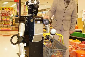 Primjerice, u prodavaonicama u Japanu robot Robovie, proizvod Advanced Telecommunications Research Institute Internationala u Kyotu, pronalazio je kupce koji nisu nosili masku i pristojno ih upozoravao da je stave te drže preporučeni razmak od ostalih kupaca, posebice dok su stajali u redu za plaćanje. S pomoću kamera i senzora promatrao je njihovo kretanje i laserom mjerio udaljenost između njih te im također pomagao u traženju željenih proizvoda po prodajnim centrima.