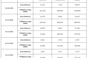 Od ukupnog broja priključenih elektrana, u kategoriji kućanstva nalazi se 31.215 obračunskih mjernih mjesta (OMM), no njihova je snaga relativno skromnih 237,5 MW. S druge strane, u kategoriji poduzetništvo nalazi se 7.732 elektrane, koje raspolažu impresivnom snagom od čak 869,4 MW. To znači da poduzetnici nose gotovo 80 posto ukupne priključne snage fotonaponskih elektrana u Hrvatskoj.